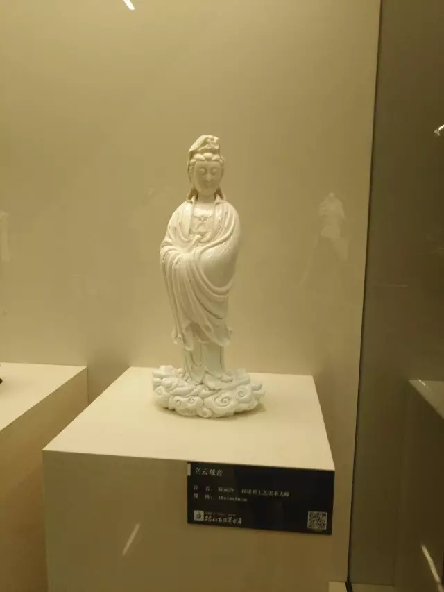 《立云观音》作品继承了瓷都千年来的传统雕塑技艺,并加以创新,观音神态端庄,立于祥云之上,精雕细刻,衣纹飘逸,洁白似玉、温润剔透的瓷质衬托出观音的纯净高雅。