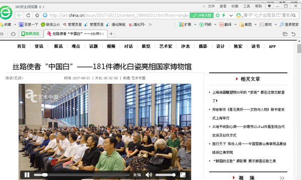 8月20日,由福建省文化厅、中国国家博物馆、泉州市人民政府联合主办的丝路使者“中国白”再出发——2017年国博德化白瓷艺术展在中国国家博物馆隆重开幕。