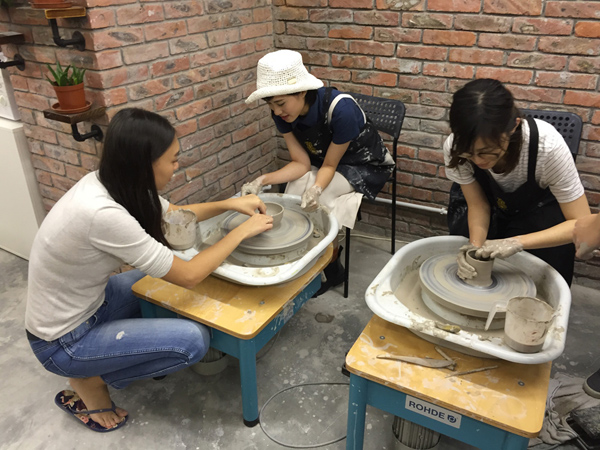 就目前看来,陶艺课在支撑整个品牌的运营,来这间工作室上课的学员,涵盖各个年龄阶层—中午十二点开课就前来的,通常是送孩子上学回来的主妇;下午二至六点在工作坊里埋头拉坯的,一般是没课的学生;傍晚六点左右来,一直待到八点关门的,多数是放工的打工仔。这意味着,不同的社群都能在各自的闲散时间里,找到他们的同伴。
