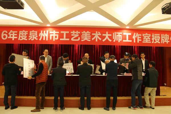 泉州市举行2016年度工艺美术大师工作室授牌仪式,向30名在泉州产业中极具代表性的领衔大师授牌成立工艺大师工作室。