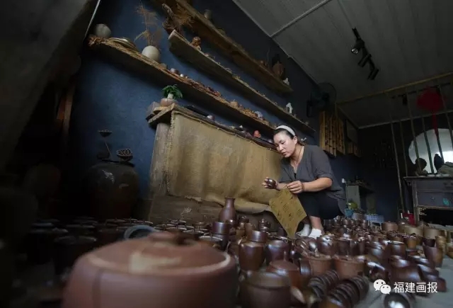 晓德陶艺坊内琳琅满目的陶瓷茶具