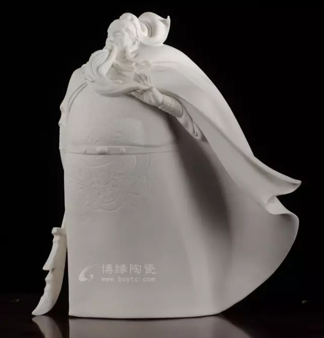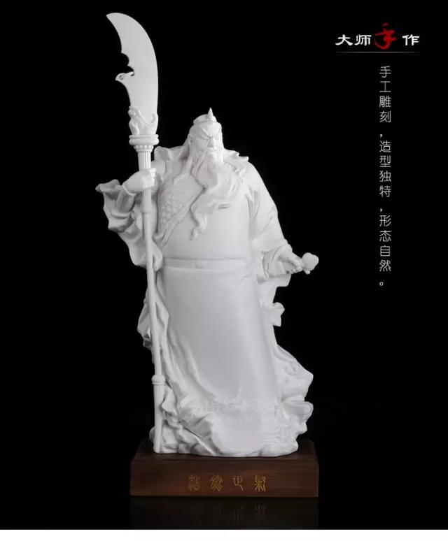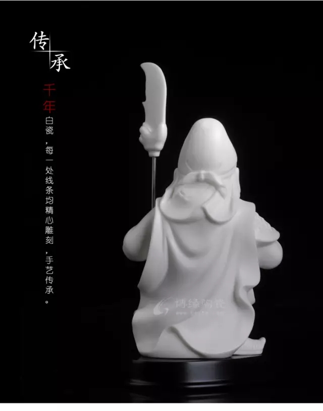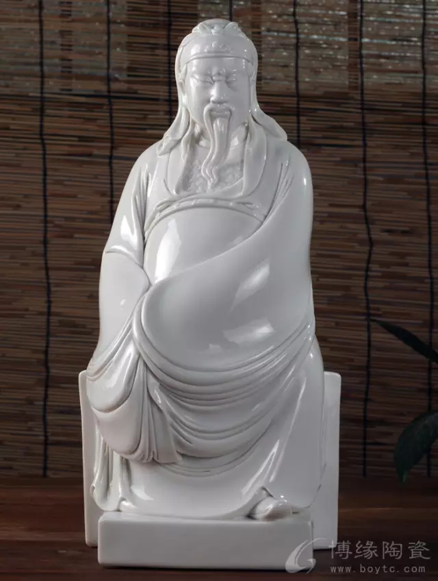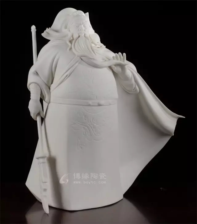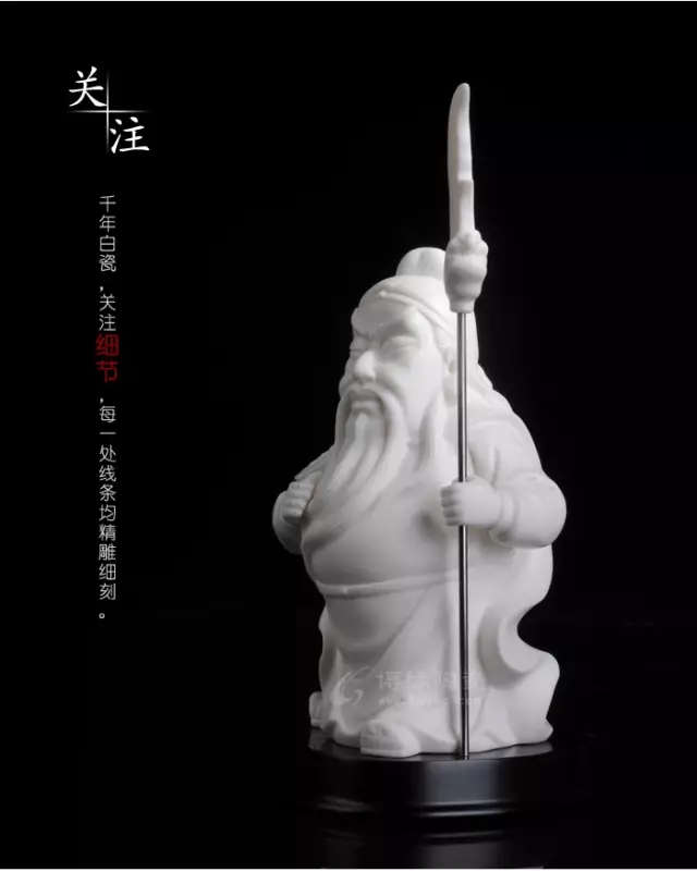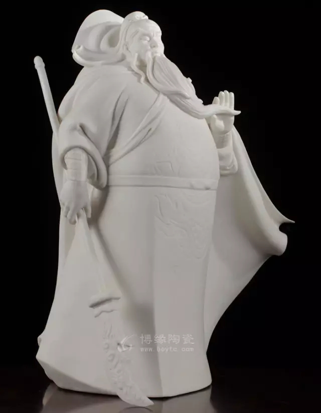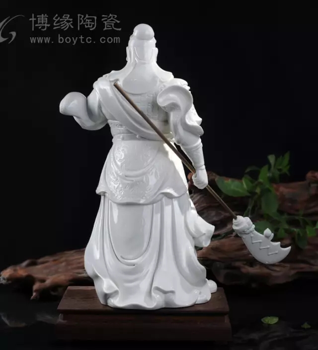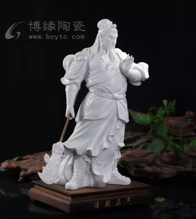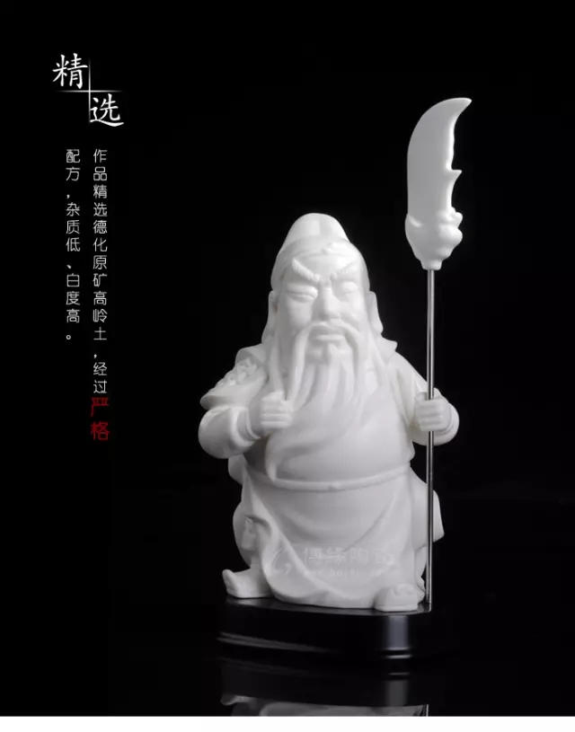 关公像是德化窑瓷塑艺术的常见题材之一。德化瓷塑在中国陶瓷史上久负盛名,它用优质的白瓷塑造神态各异的人物,以纯净莹润的釉色和生动传神的形象取胜,摒弃彩绘而追求单纯的雕塑美和原材料的质地美,独具艺术风韵。