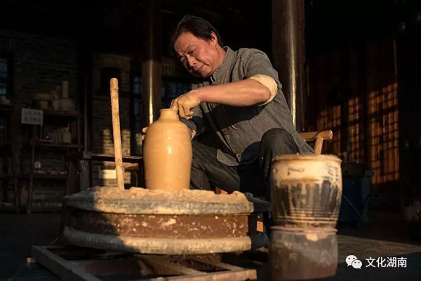 铜官窑陶瓷艺术大师周世洪在制陶。