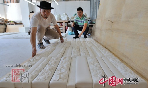 说到德化白瓷在此次会晤中的首次“上墙”,德化县腾艺陶瓷有限公司曾昭腾感叹来之不易:“历时3个月,最终从数千块瓷片中精选出518块,最终才让德化白瓷实现完美上墙。”