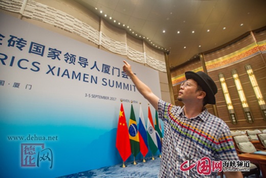 事实上,德化陶瓷进入金砖国家领导人厦门会晤现场的并不止陈仁海一个,放眼此次举世瞩目的厦门金砖会晤全过程,细心的观众会发现德化陶瓷元素几乎无处不在。
