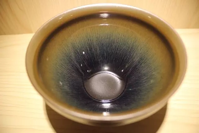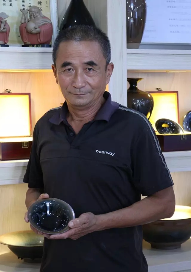 许家有善于烧制兔毫,其金兔毫作品毫纹清晰细腻,毫毛如银针,细致绵长;银兔毫作品则黑底银针,丝丝新亮,油滴作品结晶效果好,斑纹饱满均匀。