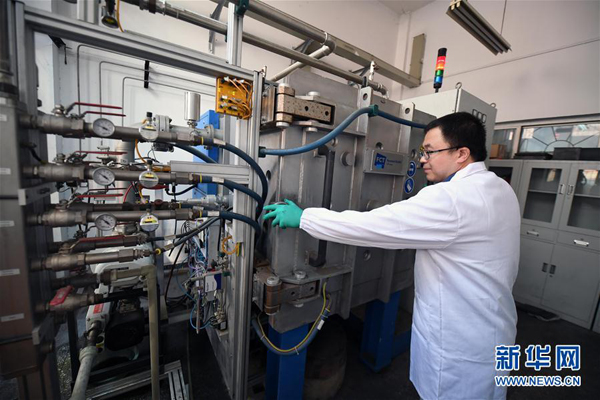 中南大学粉末冶金国家重点实验室研究人员在超高温金属渗透专用炉前工作(9月16日摄)。记者近日从中南大学获悉,由黄伯云院士领衔的中南大学粉末冶金国家重点实验室团队,通过大量实验开发了一种新型的耐3000摄氏度烧蚀的陶瓷涂层及其复合材料,这一发现有可能为高超声速飞行器的研制铺平道路。9月16日,记者来到这个实验室,现场见证了科研工作者对新型超高温复合材料坯体进行3000摄氏度烧蚀实验。新华社记者 李尕 摄 中南大学粉末冶金国家重点实验室内,超高温复合材料坯体灼烧实验正在进行(9月16日摄)。记者近日从中南大学获悉,由黄伯云院士领衔的中南大学粉末冶金国家重点实验室团队,通过大量实验开发了一种新型的耐3000摄氏度烧蚀的陶瓷涂层及其复合材料,这一发现有可能为高超声速飞行器的研制铺平道路。9月16日,记者来到这个实验室,现场见证了科研工作者对新型超高温复合材料坯体进行3000摄氏度烧蚀实验。新华社记者 李尕 摄