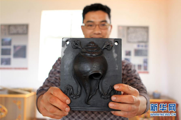 25岁的拉茸肖巴在汤堆村非遗展示区展示其制作的藏族黑陶(2017年9月12日摄)。 新华社记者 井辉辉 摄