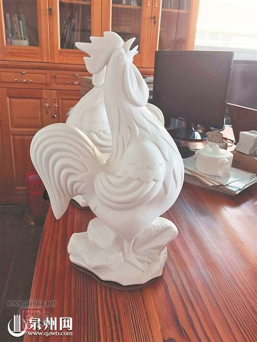 德化陶瓷作品“金鸡报喜” (苏凯乐 供图)