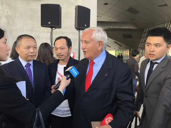 “中国白”国际陶瓷艺术大赛颁奖结束后法国前总理拉法兰接受德化电视台采访