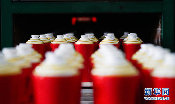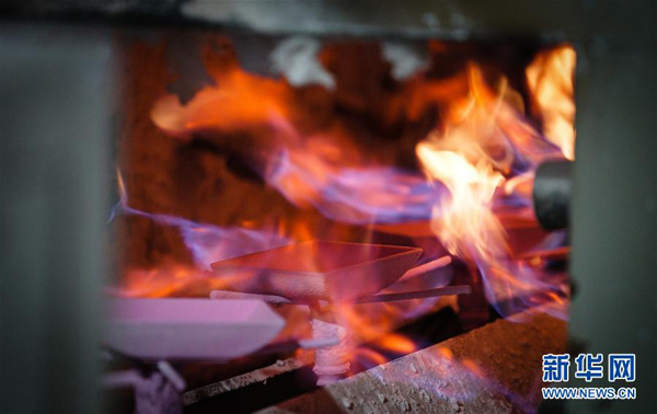 9月26日,在位于江苏南京的高淳陶瓷生产车间,工人使用天然气窑对瓷具进行施釉前预热。