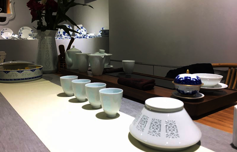 景德镇青花玲珑瓷——祥云系列亮相瓷博会(王东摄)