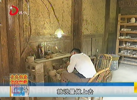 【同期声 《见山》工作室负责人庹纯阳:我是从湖南湘西过来的,因为我有一个同学他刚好是德化的,偶然的机会,在朋友的工作室,我接触到手拉坯柴烧这一块。刚开始接触,就觉得好玩,然后经过烧窑,这个泥巴它烧出来,能出彩万千,那种变化,那种魅力,让我下定决心来到德化做柴烧这一个事业。】
