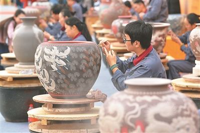 圖為宜興非遺均陶制作技藝展示。 萬程鵬攝
