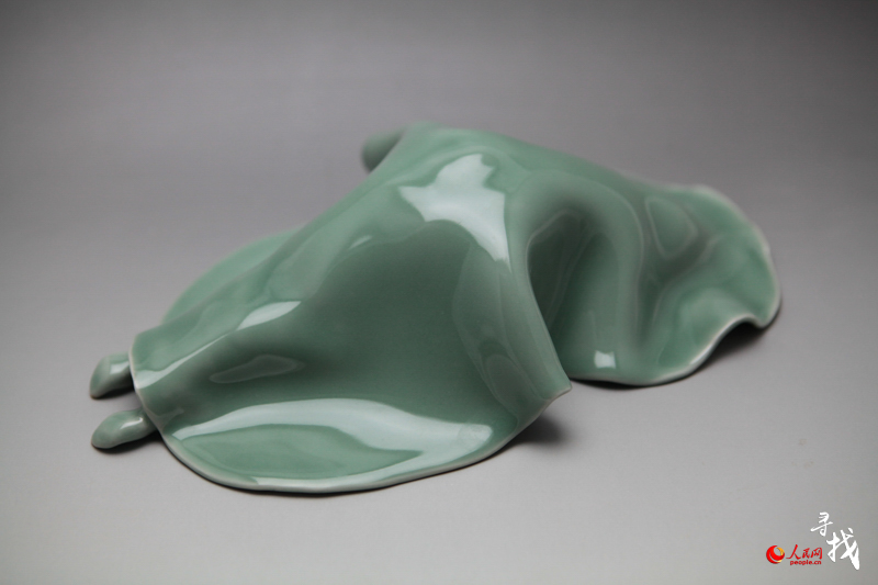 张娜正在与朋友探讨她刚刚创作出的青瓷作品。