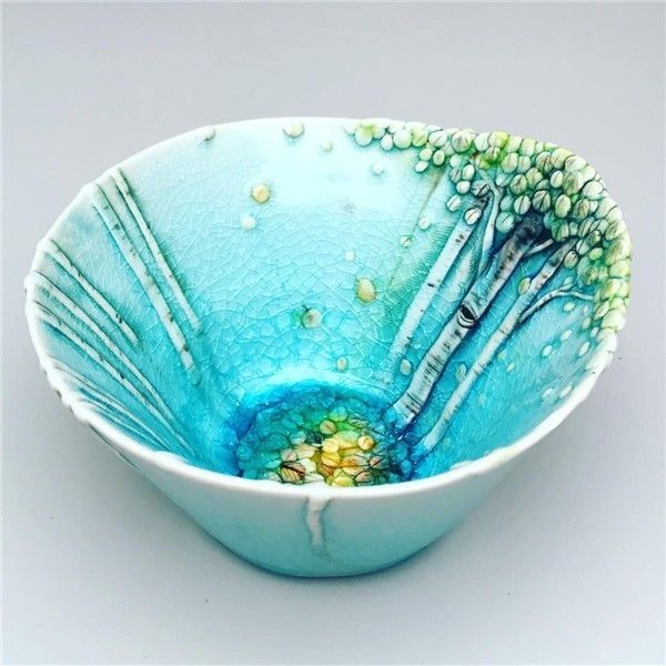 轻柔如春天般的嫩绿色、淡雅的水蓝釉色,Heesoo Lee 的作品风格相当宁静柔和,光看就觉得很舒服。