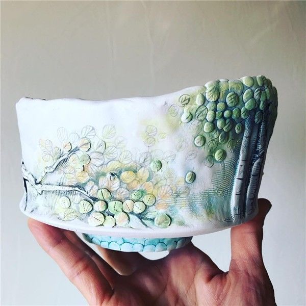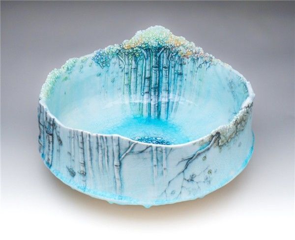 一般常见的陶瓷器皿,外观或者个性粗犷,或者精致细腻,但是艺术家 Heesoo Lee 制作的陶瓷作品,除了基本的收纳功能外,这些瓷器外观看起来简直像一幅幅山清水秀的风景浮雕画。