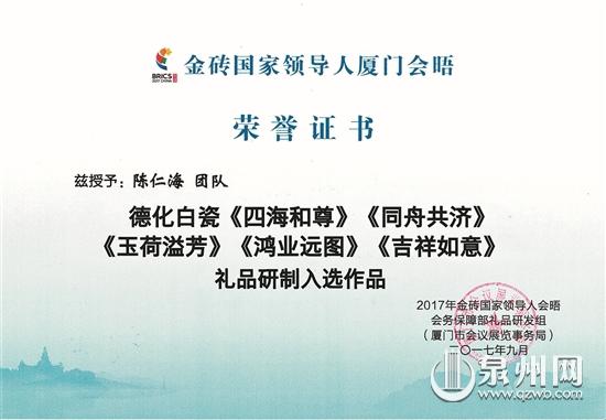 “很多人不知道德化瓷的发展走到了哪个阶段,恰恰此次金砖会晤让大家重新认识德化瓷,原来德化瓷是这么高端典雅的。”陈仁海说,随着人们生活水平的提高,对美好生活的追求更高,德化陶瓷艺人创作出这么美的作品,今后将慢慢走进家庭,这就是“中国白”未来发展的趋势。