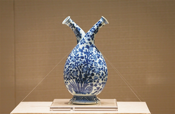 明代宣德青花扁壶。海南日报记者 王玉洁 摄