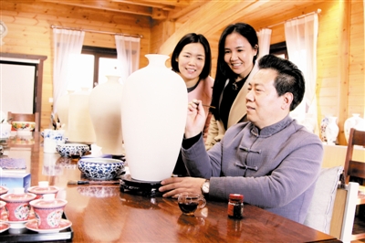 据了解,绿源瓷画苑是目前天津市唯一以瓷艺术为主题的创作中心,瓷画苑内的瓷器藏品展览室、陶瓷创意工作室、陶瓷烧造工作室等区域,展示了拉坯、利坯、上釉、绘画、烧制等制瓷工艺。素坯绘画是陶瓷工艺中的重要一环。瓷泥成型后经晾干而成的半成品只是素坯,需要工匠用矿物颜料在素坯上绘制各种图案,然后再烧制成陶瓷作品。瓷画苑定期邀请津城书画家和书画爱好者在陶瓷素坯上作画。很多老年书画爱好者把自己的画作“搬”到陶瓷上,经过烧制,使画作成为陶瓷艺术品的一部分。