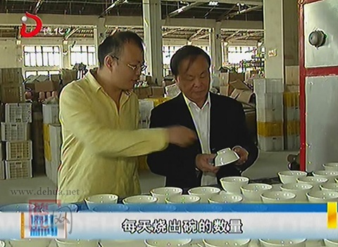 【同期声 玉瓷发展股份有限公司董事长温克仁:因为自生釉的技术,很适合于全自动的智能生产,现在我们引进这条自动生产线,一分钟可以生产13个碗,13个的产品,整个24小时都可以运转,能够保证我们那条60米滚道窑的正常24小时的烧成,每天烧出碗的数量,按分钟计算可以达到2万多个,烧出来的整个效果非常好,实现机器换人,由于目前工人比较缺少,所以我们整条的生产线,现在只要在装窑的位置上,再安排一个机器手,我们就调整一下,这样就可以实现智能全自动的日用瓷生产。烧出的产品合格率都达到了百分九十七点几的产品。】