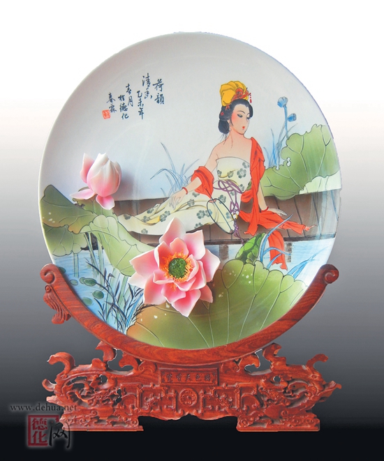 后来与瓷花工艺结缘,是因为一件获得金奖的陶艺作品《孔雀开屏》,作品中孔雀的羽毛看上去真假难辨,如此微妙精细的工艺一下子吸引了郑燕婷的注意,于是郑燕婷白天在厂里做瓷观音,晚上就在家里钻研捏弄瓷花。时光飞逝,当年那个还懵懵懂懂的她,现在因为出神入化捏制瓷花的技艺,已然成为德化瓷艺界家喻户晓的明星。