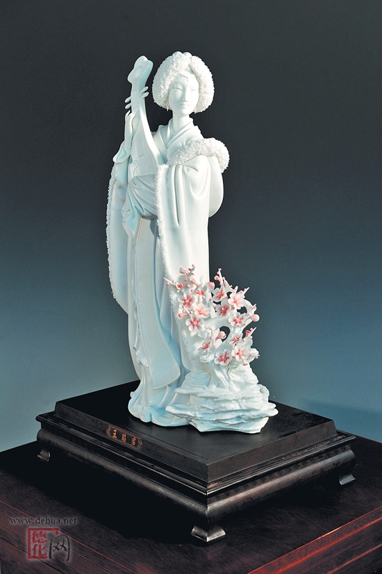 郑燕婷成长于陶瓷工艺美术世家,其父郑子添擅长德化少有的釉下青花设计和制作,郑燕婷自小随父学习陶瓷技艺,熟练地掌握了德化传统瓷塑技法,上世纪80年代她在德化瓷厂从事瓷雕产品的设计。那时候,她创作各种观音、麻姑、天女、嫦娥、“四大美人”等古代仕女、红楼梦系列仕女人物瓷雕,出口产值就达到三千多万元。