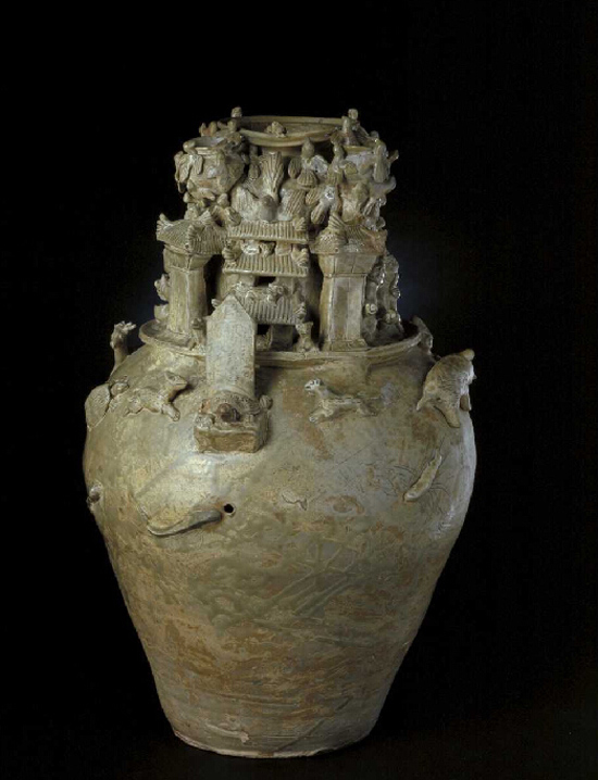 三国吴青釉堆塑谷仓罐
