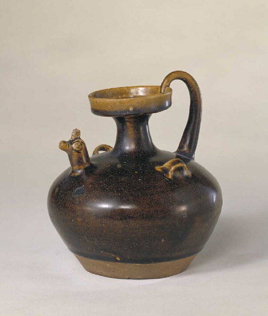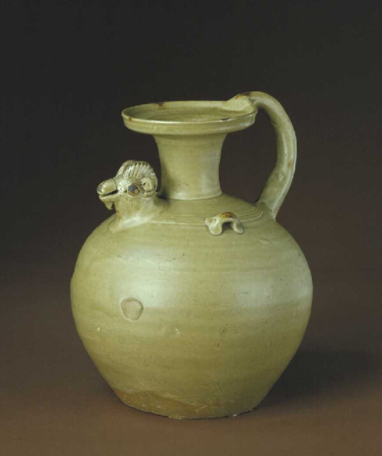 东晋青釉褐斑羊头壶