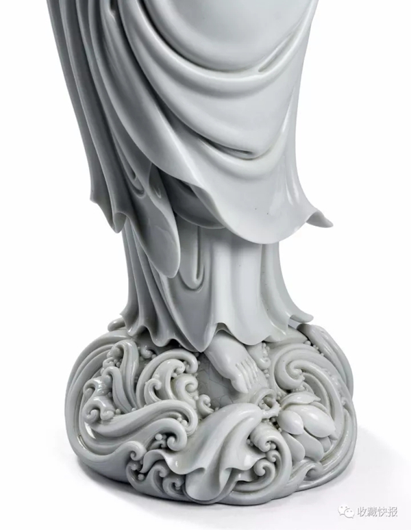 昨日,在香港佳士得2017秋季拍卖会举行的“御苑·文心·匠艺——明代器物书画晚间拍卖”专场上,“明代瓷圣”何朝宗创作的德化窑白釉渡海观音以1600万港元落槌,超越2014年香港佳士得1444 万港元成交的何朝宗渡海达摩像,创下迄今为止德化白瓷拍卖世界纪录,此前,该尊观音像估价1000万至1500万港元。市场对于德化白瓷以及何朝宗瓷塑的认识度达到了一个新的高度。