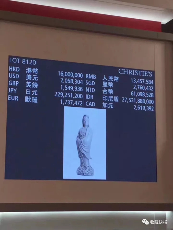 原标题:1600万港元落槌!何朝宗渡海观音打破德化白瓷世界拍卖纪录