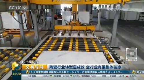 11月28日,央视财经频道《交易时间》栏目以“陶瓷行业转型显成效 全行业有望集体破冰”为题,聚焦国内陶瓷行业,把镜头对准了行业转型中具有引领性的企业,展现了陶瓷行业转型的成效和向好趋势。