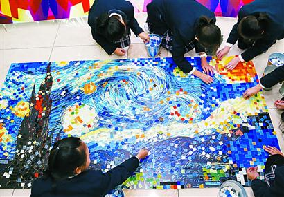 学生在陶艺文化展示活动上进行陶瓷拼贴。 邵剑平 摄