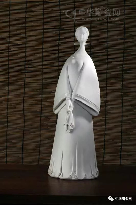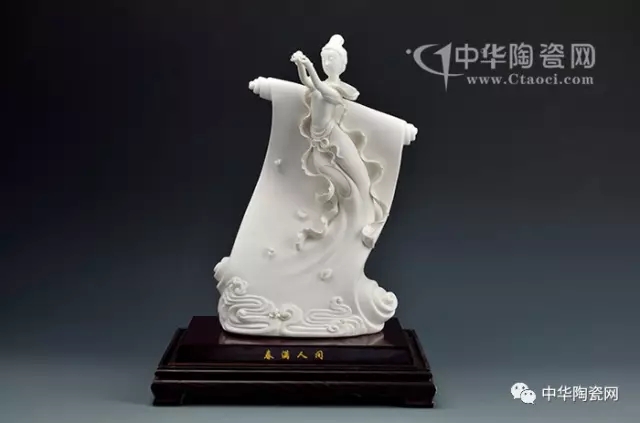 作品《明月》瓷质细腻,胎骨洁白,坚实致密,有凝脂似玉之感,工艺精湛,女子神采婀娜,娇羞动人,如清风明月般自然舒心。