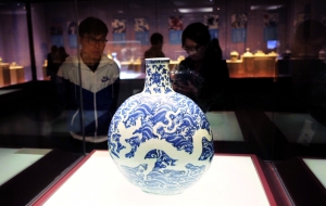 明宣德款青花云龙纹大瓶,是官窑精品。信息时报记者 徐敏 摄