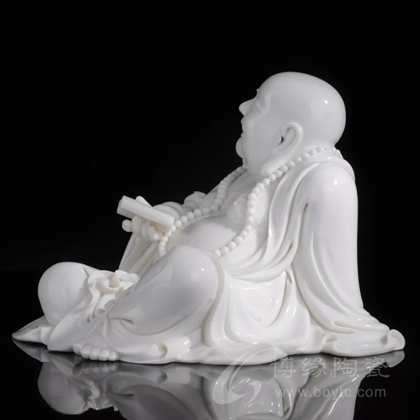 作品《学海无涯》(长宽高23*22*16 cm)由中国青年陶瓷艺术家柯维太设计制作,以德化特有的温润如玉的“中国白”为胎质,德化白瓷作品题材新颖独特,纯手工制作,弥勒半靠坐于布袋上,一手捧书,造型精美、细致、可爱又不失高雅,弥勒笑容满面,神韵逼真,笑意醉人,长耳笑眼,姿态动人,衣纹线条修长流畅清晰,层次分明,所塑人物性格鲜明, 神态逼真,是居家,办公桌,公司,店铺摆设,有祈福保平安,助学业进步,生意兴隆,财源广进。