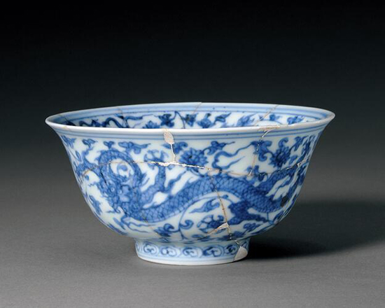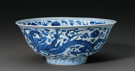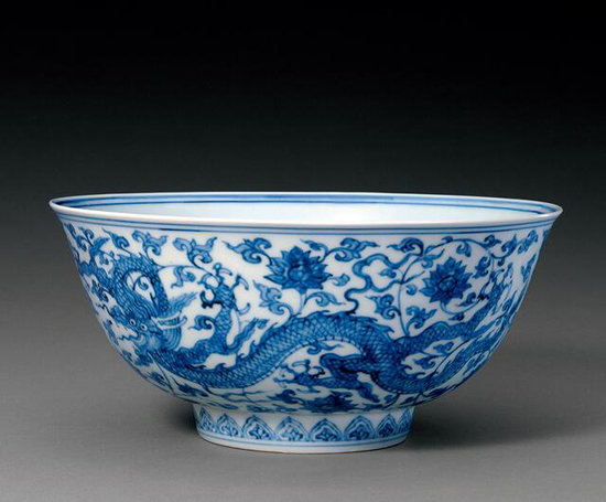 青花龙穿缠枝莲纹碗