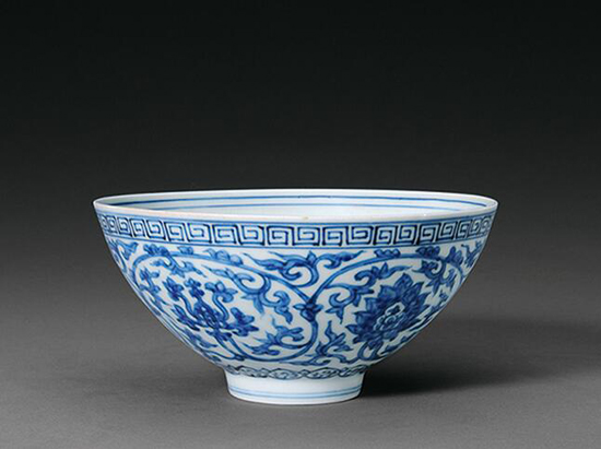 青花缠枝灵芝纹碗