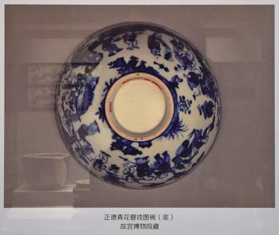 该部分展柜背景图所展示的正德青花婴戏图碗(底)图