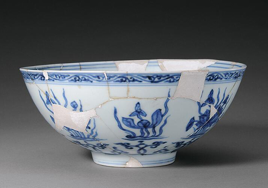 青花荷莲纹碗