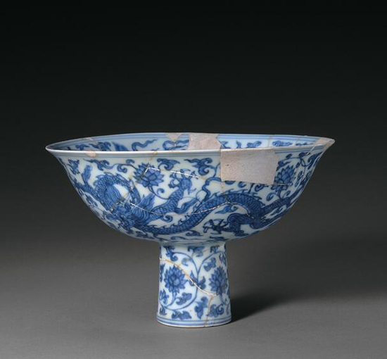 青花龙穿缠枝莲纹高足碗