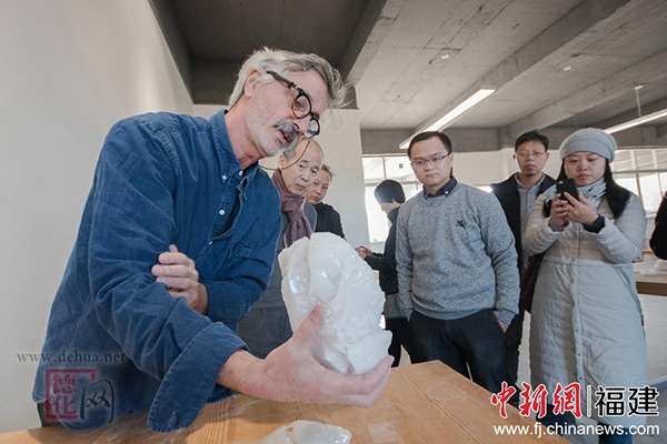 瑞土日内瓦大学陶艺系教授Philippe Barde(菲利普- 巴尔德)向德化青年陶瓷艺术家展示其作品。