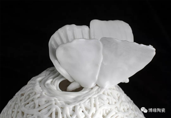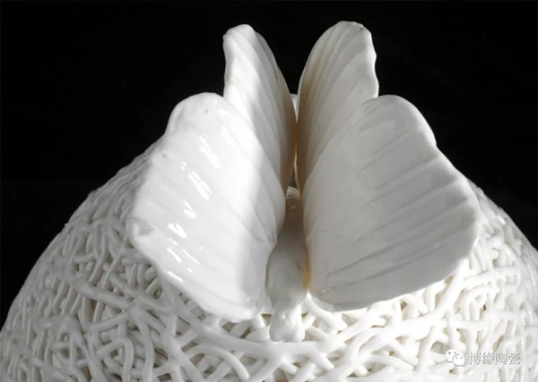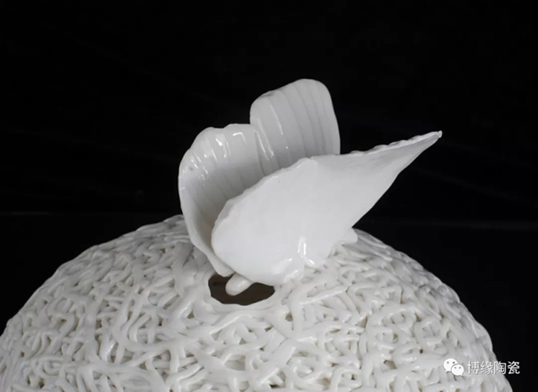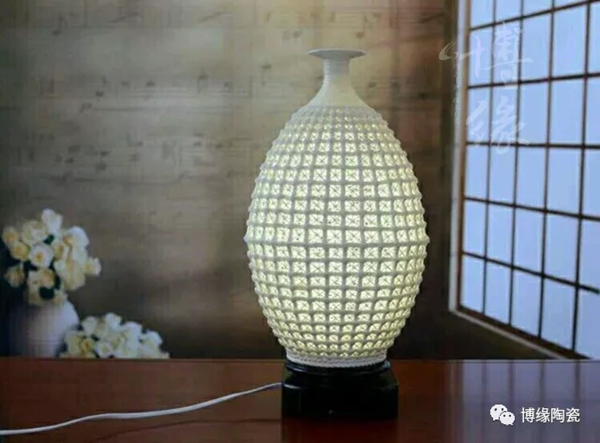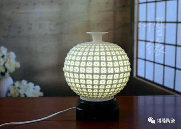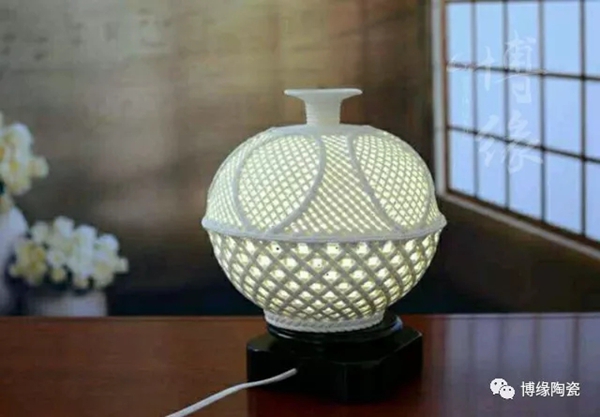 编织镂空花瓶精选上好原瓷泥料,经过精心加工,其含杂质少,瓷质白,是白瓷中之精品,在光照之下,薄壁亮透、白如凝脂,透润如玉,胎釉透亮。