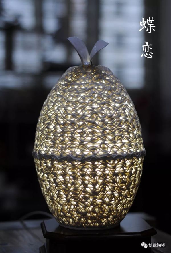 作品采用纯手工编织藤条镂空技术,用陶瓷泥土手工搓线,手工搓成粗细均匀大小线条,在搓线过程中需要严格控制水分和软硬程度,否则极易断裂,这是手工编织开始重要的一步。