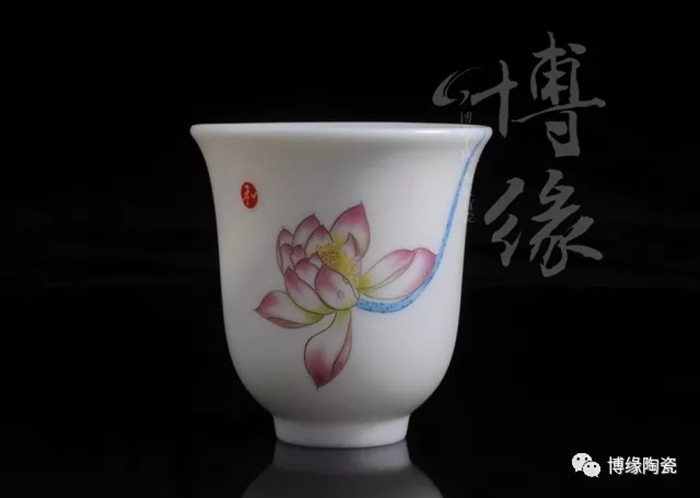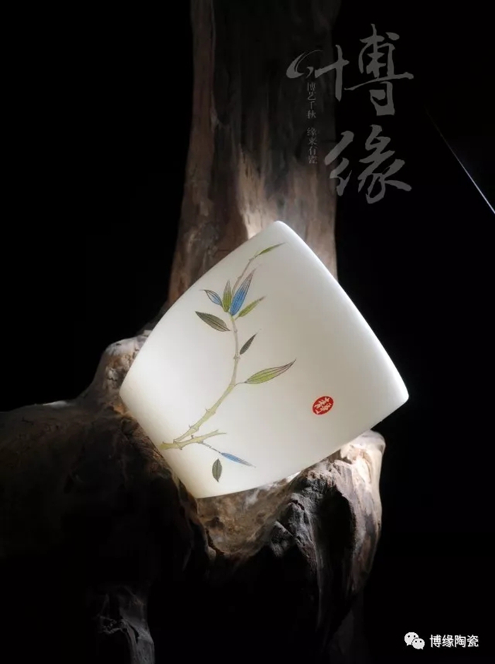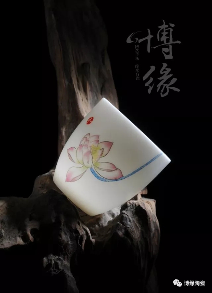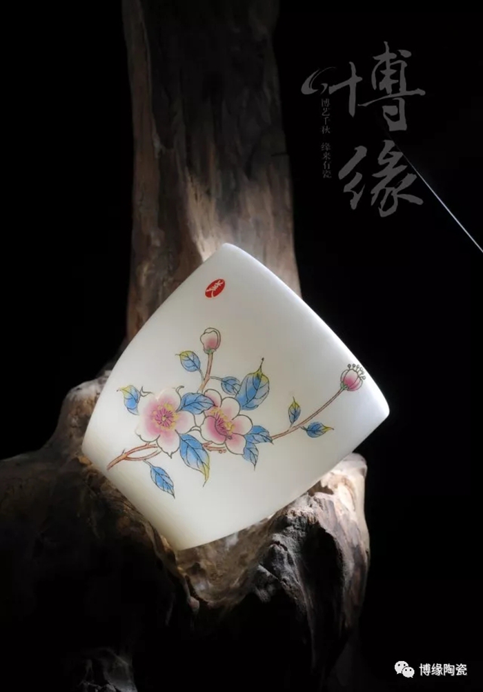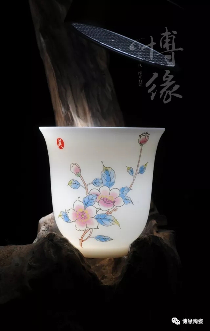 和善静美玉瓷杯,精选3-5万元每吨原瓷泥料,经过精心加工,其含杂质少,瓷质白,白度高达95%,是白瓷中之精品,在光照之下,白如凝脂,透润如玉,胎釉透亮。