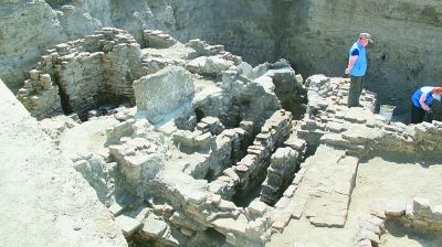2016年的考古发掘首先在内城西部和东门内侧展开,重点是内城的西部。当考古人员一层层地揭开土层后,首先映入他们眼中的是一道道东北—西南走向的土坯墙。这些土坯墙均为单坯墙,高约1米,形制十分规整。今年,在这些土坯墙的旁边又发现了7排,共计21排。这些土坯墙是起什么作用的?它们为何要建在房址外呢?