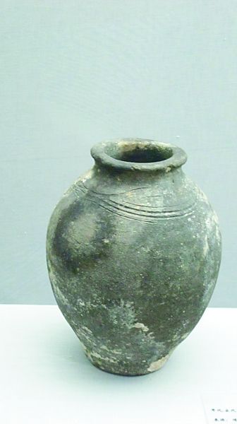 达勒特古城出土的黑陶罐。王瑟摄/光明图片
