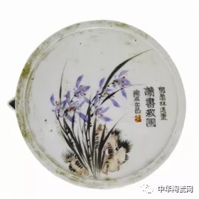 如图所示的这件瓷质墨盒,正面绘有精美的石兰图,旁边镌写着“读书救国”四个大字,另镌有“郭华林选置 陶玉出品”等字样。陶玉瓷彩店,系民国期间德化著名的彩瓷店之一,为赖思环(1904—1957)于1937年前夕创办。赖思环一生从事瓷彩艺术及瓷彩营销生意40年,他工新彩花鸟、山水、图案及八分书法,所画花卉、动物、山水等,笔墨娴熟,面画清雅,形神兼备,栩栩如生。