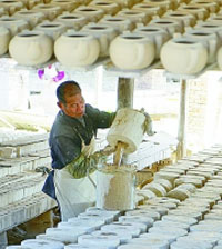 有着400年历史的月记窑还在进行传统柴烧,每月烧窑一次。 光明图片