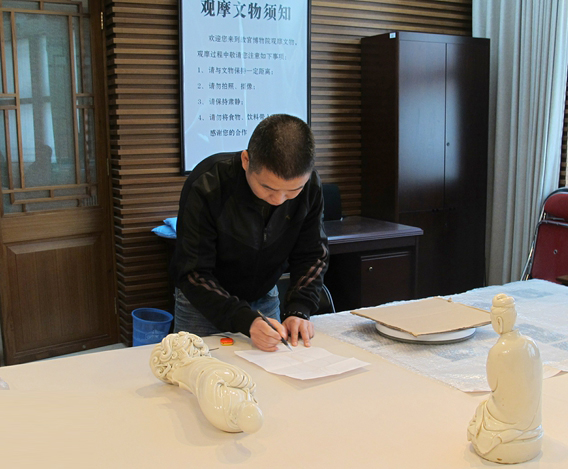 在故宫观摩文物,绘制图纸